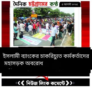 সীতাকুণ্ডে ঢাকা–চট্টগ্রাম মহাসড়ক অবরোধ করে ৪০০ কর্মকর্তার চাকুরি ফিরিয়ে দেয়ার দাবি জানিয়েছে ইসলামী ব্যাংকের কর্মকর্তারা। শনিবার বেলা ১১টা থেকে তারা মানববন্ধন ও মহাসড়ক অবরোধ কর্মসূচি পালন করায় গুরুত্বপূর্ণ এ সড়কে কমপক্ষে দীর্ঘ ২৫ কি.মি. যানজট সৃষ্টি হয়। এতে চরম দুর্ভোগে পড়েন রোগীসহ হাজার হাজার সাধারণ মানুষ। প্রথমে তারা একঘণ্টা মহাসড়কের পাশে দাঁড়িয়ে সারিবদ্ধভাবে মানববন্ধন কর্মসূচি পালন করলেও পরে তারা সড়কে উঠে আসেন এবং প্রায় একঘণ্টা তারা সড়কে অবস্থান করেন। পরে পুলিশ এসে তাদেরকে বুঝিয়ে মহাসড়ক থেকে সরিয়ে দিলে যান চলাচল শুরু হয়।