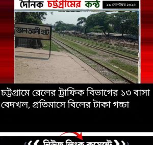 রেলওয়ে পূর্বাঞ্চল চট্টগ্রামে ট্রাফিক বিভাগের ১৩টি বাসা বেদখল হয়ে আছে। এতে প্রতিমাসে বিদ্যুৎ, গ্যাস, পানির বিল বাবদ বিপুল টাকা গচ্চা যাচ্ছে। একইসঙ্গে ভাড়াও মিলছে না। রেলের কিছু অসাধু কর্মচারী এসব বাসা অন্যদের ভাড়ায় দিয়ে টাকা হাতিয়ে নিচ্ছে। এ ঘটনায় মহাব্যবস্থাপক তদন্তের নির্দেশ দিলে প্রায় ২০ দিনেও তা আলোর মুখ দেখেনি।