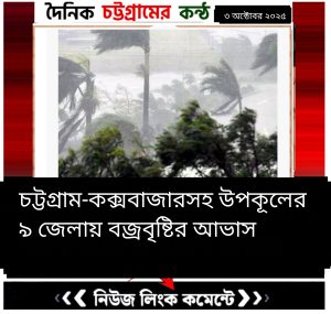চট্টগ্রাম-কক্সবাজারসহ উপকূলের ৯ জেলায় বজ্রবৃষ্টির আভাস