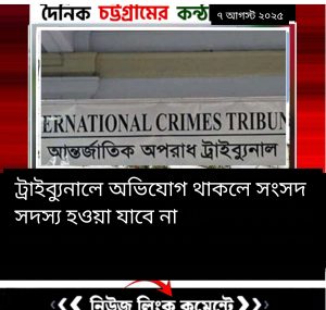 আন্তর্জাতিক অপরাধ ট্রাইব্যুনালে (আইসিটি) কারো বিরুদ্ধে আনুষ্ঠানিক অভিযোগ দাখিল হলে তিনি সংসদ সদস্য হওয়ার বা থাকার যোগ্য হবেন না বলে প্রজ্ঞাপন জারি করেছে আইন মন্ত্রণালয়।