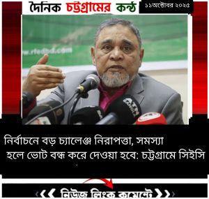 শনিবার (১১ অক্টোবর) সকাল ১১টার দিকে চট্টগ্রামে নির্বাচন প্রক্রিয়ায় ভোটগ্রহণকারী কর্মকর্তাদের সঙ্গে আয়োজিত কর্মশালায় তিনি এ কথা বলেন।
