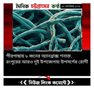রংপুরের পীরগাছার পর মিঠাপুকুর ও কাউনিয়া উপজেলায় অ্যানথ্রাক্স উপসর্গের রোগী পাওয়া গেছে। ইতিমধ্যে সরকারের রোগতত্ত্ব, রোগনিয়ন্ত্রণ ও গবেষণা প্রতিষ্ঠানের (আইইডিসিআর) বিশেষজ্ঞরা জেলার পীরগাছার আটজন অ্যানথাক্স আক্রান্ত রোগী শনাক্ত করেছেন।