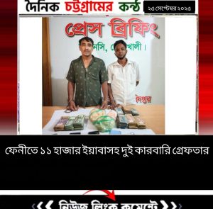 ফেনীতে ১১ হাজার ইয়াবাসহ দুই কারবারি গ্রেফতার