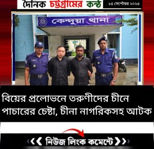 নেত্রকোনার কেন্দুয়ায় বিয়ের প্রলোভন দেখিয়ে তরুণীদের চীনে পাচারের চেষ্টার অভিযোগে এক চীনা নাগরিকসহ দুইজনকে আটক করেছে পুলিশ। এসময় তিন তরুণীকে উদ্ধার করা হয়।