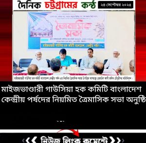 মাইজভাণ্ডারী গাউসিয়া হক কমিটি বাংলাদেশ কেন্দ্রীয় পর্ষদের নিয়মিত ত্রৈমাসিক সভা অনুষ্ঠিত