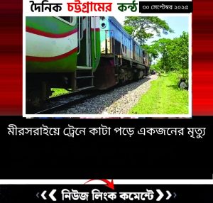 মীরসরাইয়ে ট্রেনে কাটা পড়ে মহি উদ্দিন (৩০) নামের এক কারখানা শ্রমিকের মৃত্যু হয়েছে।