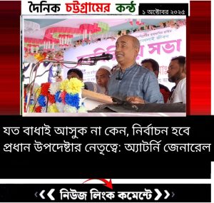 অ্যাটর্নি জেনারেল মো. আসাদুজ্জামান বলেছেন, প্রধান উপদেষ্টা অধ্যাপক ড. মুহাম্মদ ইউনূসের নেতৃত্বেই আগামী ফেব্রুয়ারিতে নির্বাচন অনুষ্ঠিত হবে। এখানে যত বাধাই আসুক, জনগণ তা প্রতিহত করবে। এটাই জুলাই গণ-অভ্যুত্থানের মাধ্যমে নতুন সরকারের বৈধতা ও জনগণের সামাজিক চুক্তি।