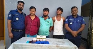 গ্রেপ্তাররা হলেন- কক্সবাজার জেলার উখিয়া থানার জালিয়াপালং ইউনিয়নের নুর আহম্মদের ছেলে জসিম উদ্দিন (৩৩), কক্সবাজার জেলার সদর উপজেলার ঝিলংজা ইউনিয়নের পশ্চিম লাহারপাড়া এলাকার মৃত আবু শমার ছেলে মো. করিম (৩৪), একই এলাকার মো. শাহীন আলমের ছেলে মহিউদ্দিন (২৫)।