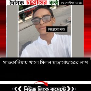 চট্টগ্রামের সাতকানিয়ায় খালে ভাসমান অবস্থায় ইয়াছিন আরাফাত (১৩) নামে হেফজখানার এক ছাত্রের লাশ উদ্ধার করেছে পুলিশ।