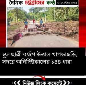 খাগড়াছড়িতে মারমা স্কুলছাত্রী ধর্ষণের ঘটনায় উত্তেজনা ছড়িয়ে পড়ায় জেলা প্রশাসন সদর এলাকায় ১৪৪ ধারা জারি করেছে। শনিবার জারি করা এই আদেশ পরবর্তী নির্দেশ না দেওয়া পর্যন্ত বলবৎ থাকবে।