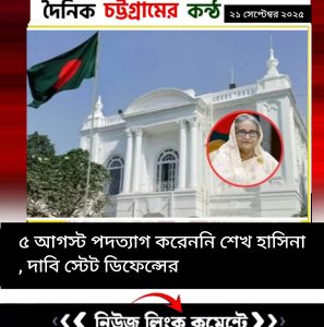 আন্দোলনের মুখে গত বছরের ৫ আগস্ট দেশ ছেড়ে ভারতে যাওয়ার আগে প্রধানমন্ত্রীর পদ থেকে শেখ হাসিনা পদত্যাগ করেননি দাবি করেছেন আন্তর্জাতিক অপরাধ ট্রাইব্যুনাল-১-এর রাষ্ট্রনিযুক্ত (স্টেট ডিফেন্স) আইনজীবী মো. আমির হোসেন।