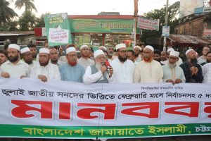 ৫ দফা গণদাবী আদায়ের লক্ষ্যে চট্টগ্রাম দক্ষিণ জেলা জামায়াতের মানববন্ধন অনুষ্ঠিত